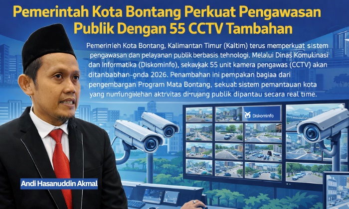 BONTANG, Pranala.co — Pemerintah Kota Bontang, Kalimantan Timur (Kaltim) terus memperkuat sistem pengawasan dan pelayanan publik berbasis teknologi. Melalui Dinas Komunikasi dan Informatika (Diskominfo), sebanyak 55 unit kamera pengawas alias CCTV akan ditambahkan pada 2026.