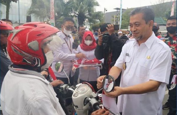 Memang, jumlah bendera yang dibagikan belum dihimpun. Namun, sumbangan dari OPD kurang lebih seribu bendera, termasuk pembagian dari kabupaten /kota.