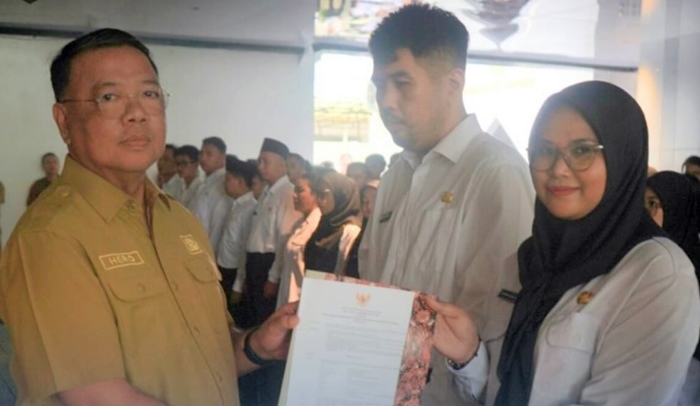 Prosesi penyerahan Surat Keputusan (SK) pengangkatan berlangsung khidmat. Sekretaris Daerah (Sekda) Kota Samarinda, Hero Mardanus Satyawan, turun langsung menyerahkan SK kepada perwakilan pegawai di hadapan ratusan peserta dan orang tua mereka yang turut hadir dengan wajah haru.
