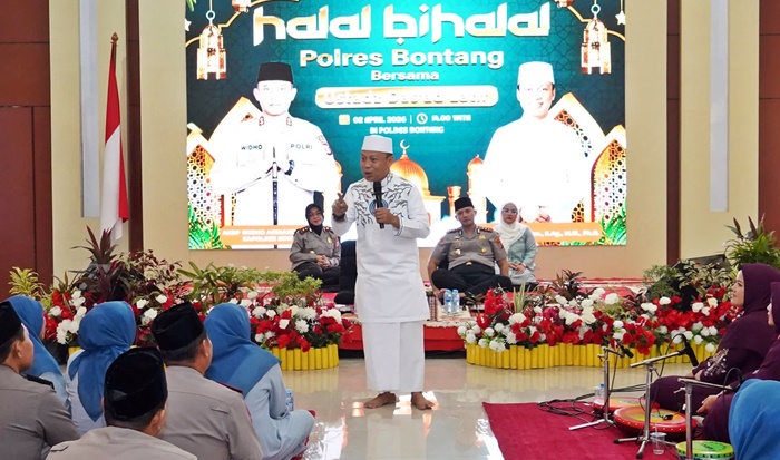 BONTANG, Pranala.co – Polres Bontang menggelar halal bihalal yang diisi dengan tausiah Ustadz Das’ad Latif. Kegiatan berlangsung khidmat di Mapolres Bontang, diikuti seluruh jajaran kepolisian dan Bhayangkari, Kamis (2/4/2026).