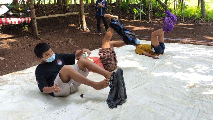 Kalau cuma makan kerupuk sambil mata ditutup sudah biasa. Tapi bagaimana jika lomba makan kerupuk dilakukan dengan posisi badan diikat jadi satu? Dalam lomba ini, peserta dikelompokkan agar memiliki ukuran tubuh yang sama, kemudian diikat satu sama lain menggunakan sarung. Mereka harus makan kerupuk yang ditempatkan di meja depan mereka, sambil menjaga keseimbangan agar tidak terjungkal karena ditarik oleh teman.