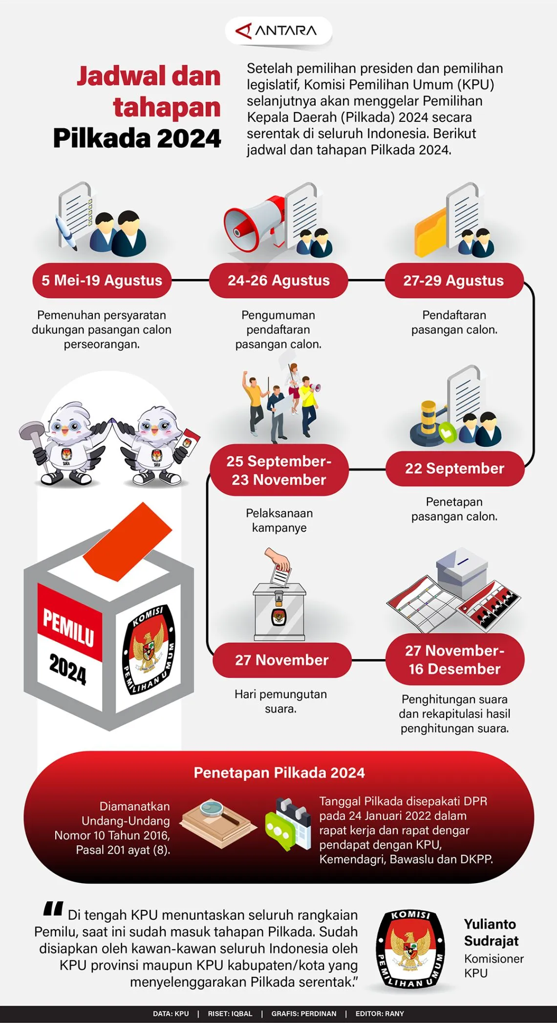 PRANALA.CO – Komisi Pemilihan Umum (KPU) telah menetapkan jadwal pelaksanaan Pilkada 2024 secara serentak.