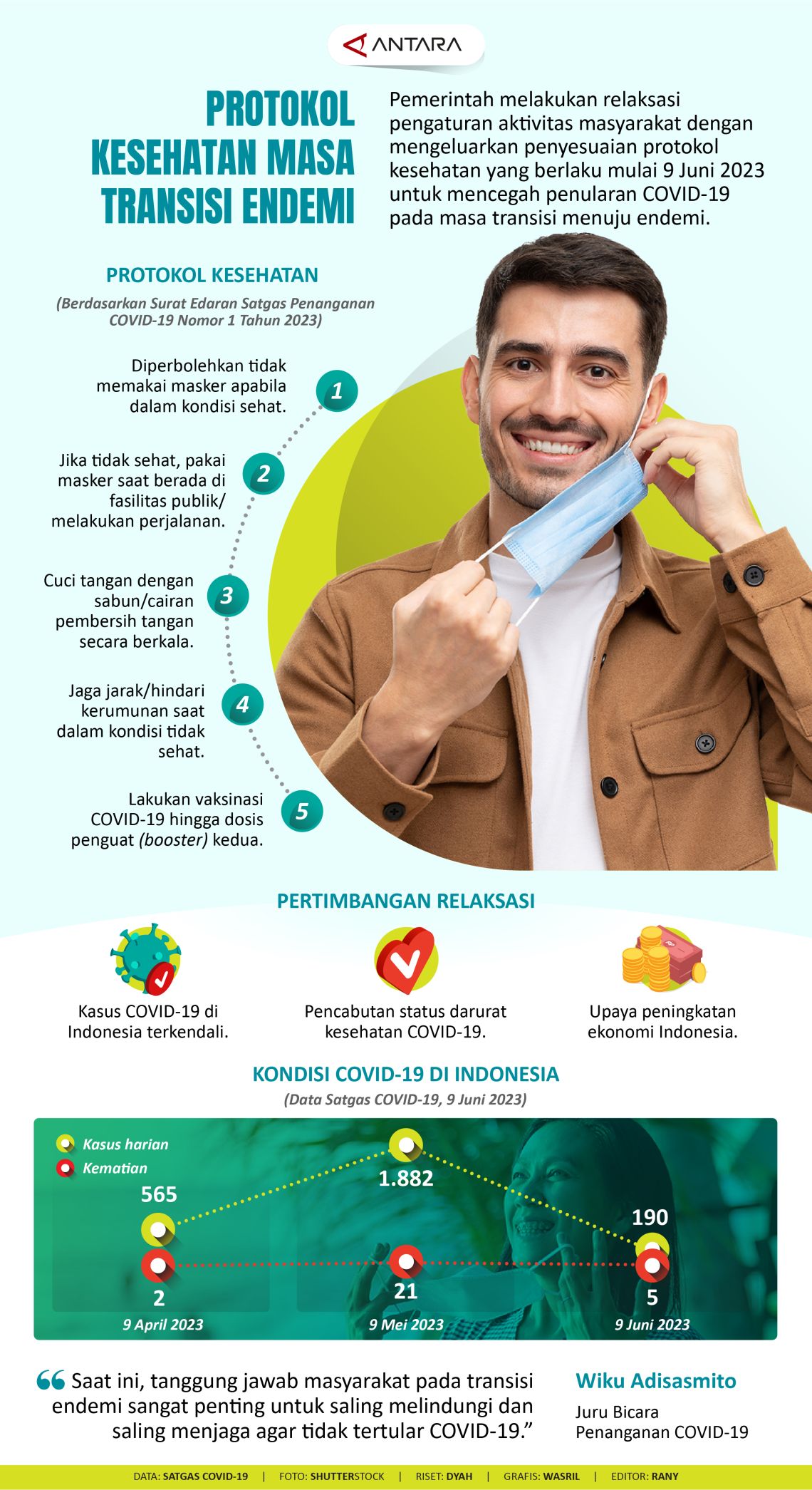 “Diperlukan penyesuaian mekanisme pengendalian terhadap protokol kesehatan pada masa transisi endemi untuk mencegah penularan COVID-19,” kata Suharyanto dalam SE.