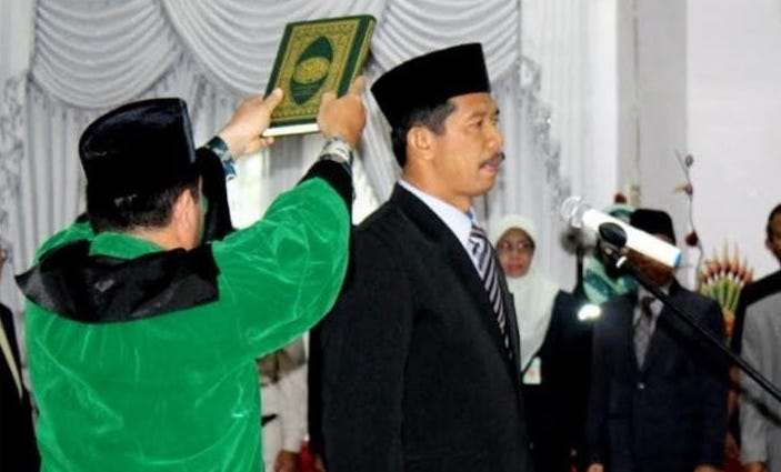 Pengambilan Sumpah dan Pelantikan Dirut PDAM Tirta Tama Kota Bontang berlangsung di Pendopo Rumah Jabatan Wali Kota Bontang, Jalan Awang Long, Kelurahan Bontang Baru, Kecamatan Bontang Utara.