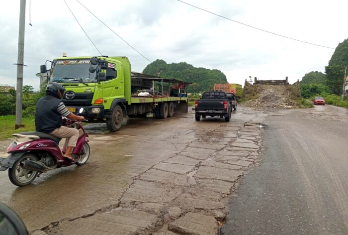 Lubang-lubang besar tersebar di berbagai titik dengan kedalaman yang terus bertambah akibat tingginya intensitas lalu lintas, mulai dari sepeda motor, mobil pribadi, hingga truk angkutan barang dan kendaraan operasional perusahaan.