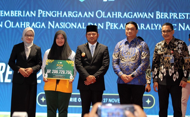 Adapun nilai bonus untuk atlet peraih medali di PON adalah Rp300 juta untuk peraih emas, perak Rp175 juta, dan perunggu Rp90 juta.