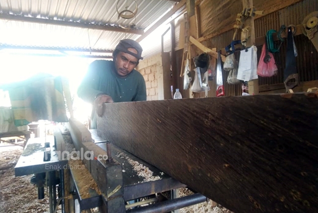 Cuaca panas tak menghalangi Angger mengetam papan. Sesekali lelaki pemilik mebel di Jalan Pattimura, Bontang itu menyeka keringat di dahinya. Kaos sedari basah dipenuhi keringat baru saja dicopotnya.