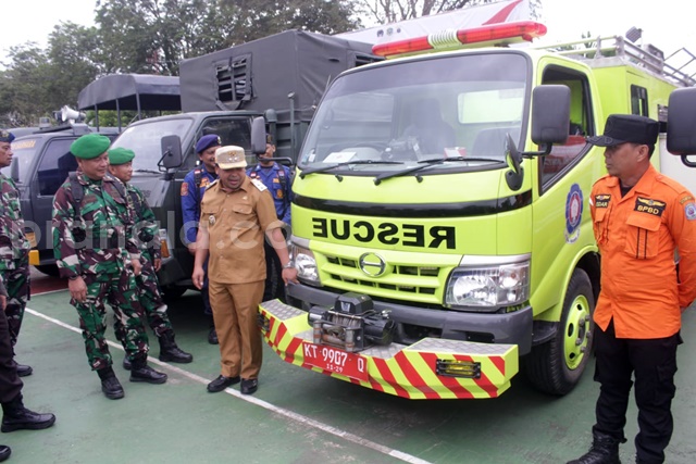 Usai apel, rangkaian kegiatan dilanjutkan dengan pengecekan pasukan. Satuan gabungan memeriksa kesiapan kendaraan operasional, alat komunikasi, hingga perlengkapan SAR ringan yang akan digunakan bila terjadi kondisi darurat.