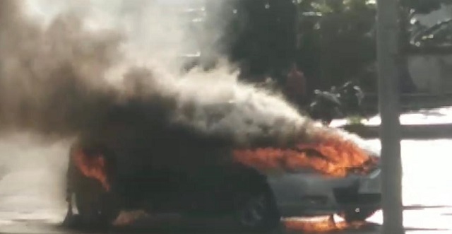 Dia melanjutkan, sesaat setelahnya, terlihat pengemudi wanita bergegas keluar dari kendaraan. Api kemudian semakin berkobar, membakar mobil tersebut.