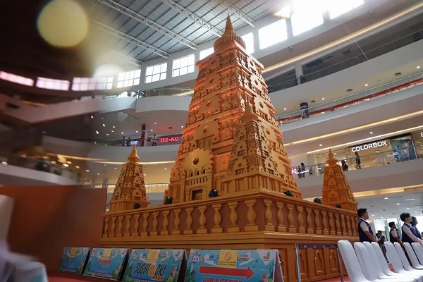 Samarinda, PRANALA.CO – Di tengah hiruk-pikuk pusat perbelanjaan, berdiri sebuah mahakarya spiritual setinggi 12 meter. Miniatur Candi Mahabodhi – yang aslinya terletak di Bodh Gaya, India – kini memikat ribuan pasang mata di atrium mal Samarinda.
