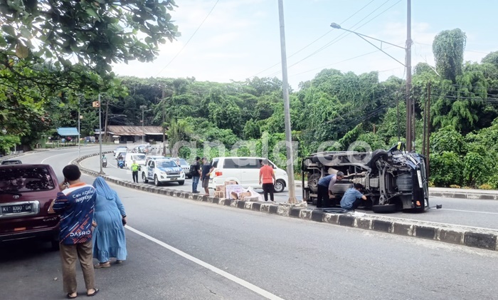 Pranala.co, BONTANG — Kecelakaan lalu lintas tunggal terjadi di Jalan Cipto Mangunkusumo, Kota Bontang, Minggu (1/2/2026) sore. Sebuah mobil boks milik PT KMBU dengan nomor polisi KT 8997 DM menabrak tiang lampu penerangan jalan hingga terbalik di badan jalan. Insiden ini mengakibatkan dua orang mengalami luka dan harus dilarikan ke rumah sakit.