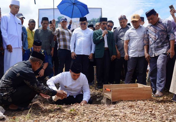 Pangkep, PRANALA.CO – Di sebuah lahan wakaf di Desa Bontomatene, Kecamatan Segeri, Pangkep, Sulawesi Selatan suara takbir dan doa bergema bersamaan dengan jatuhnya batu pertama yang diletakkan Bupati Pangkep, Muhammad Yusran Lalogau (MYL), Sabtu (12/4/2025).
