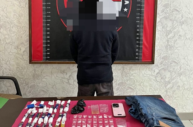 Dari tangan pelaku, polisi menyita 32 bungkus plastik bening berisi kristal putih yang diduga sabu dengan berat bruto 15,53 gram. Seluruh paket disembunyikan di kantong celana, sementara sebagian lainnya dikamuflase menggunakan bungkus makanan ringan.