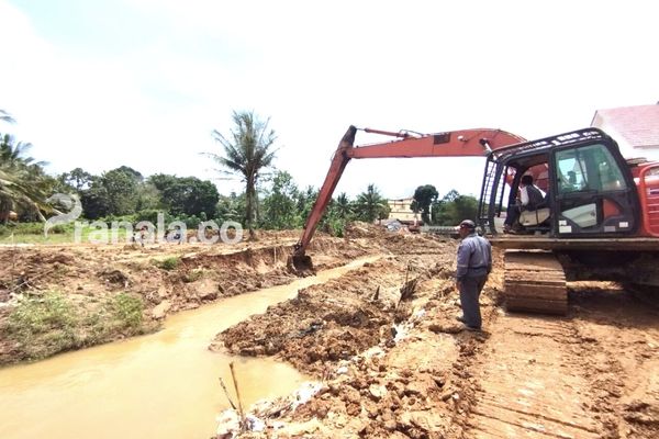 Dari pantauan pranala.co, sekira 40-an pekerja tengah sibuk mengerjakan membangun turap dengan tinggi sekira 3 meter. Sementara, dua unit ekskavator disibukkan dengan penggalian tanah sungai.