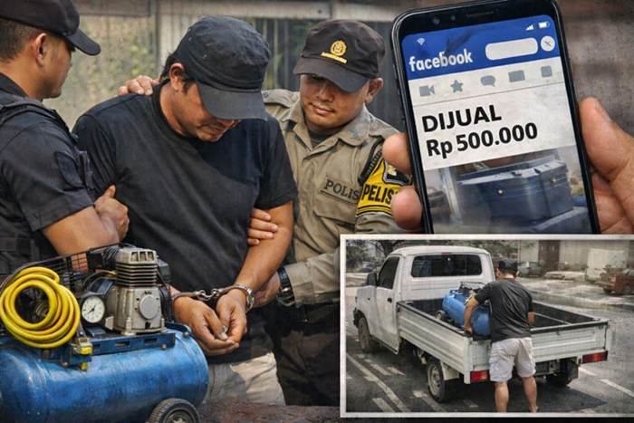 Hasil penyelidikan mengungkap, kompresor tersebut dijual melalui media sosial Facebook dengan harga Rp500 ribu—jauh di bawah nilai sebenarnya.