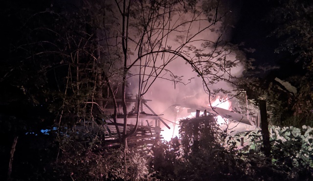 Sebuah pondok tanpa penghuni diam-diam dilalap si jago merah. Diduga akibat korsleting listrik. Asap pekat dan percikan api mulai menyebar dari bangunan sederhana yang sudah lama kosong.