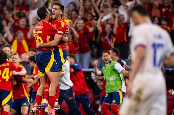 Pertandingan antara Spanyol dan Prancis berlangsung sangat menarik sejak awal. Les Bleus unggul lebih dulu pada menit ke-9 melalui sundulan Randal Kolo Muani yang memanfaatkan umpan silang dari Kylian Mbappe.