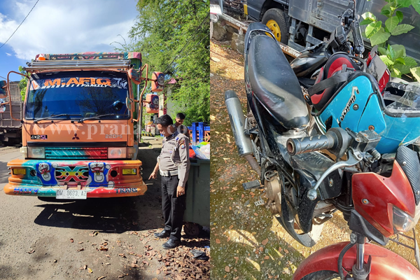Kanit Gakkum Sat Lantas Polres Pangkep, Iptu Yushar, menjelaskan kecelakaan terjadi saat truk mencoba mendahului motor di jalur sempit.