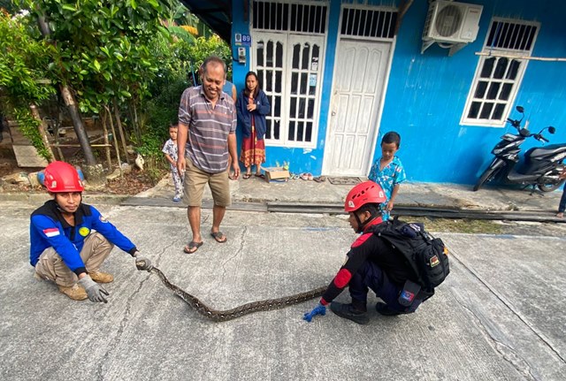 Momen menegangkan itu berhasil diredam dengan ketenangan dan ketangkasan petugas Damkar yang memadukan latihan dan pengalaman mereka dalam menangani satwa liar.