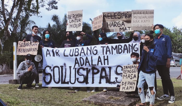 Koordinator aksi, Fajri Sunaryo menegaskan menolak rencana tersebut. Di dalam lubang tambang itu ada kandungan logam berat, yang akan naik ke permukaan, jika terjadi reaksi. Kalau air seperti itu dikonsumsi masyarakat, jelas akan sangat berbahaya.