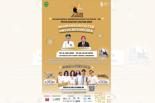 PRANALA.CO, Samarinda – Pesta Rakyat Kalimantan Timur (PRK) 2025 akan segera digelar pada 9-12 Januari 2025 di GOR Kadrie Oening, Samarinda. Acara tahunan ini dihelat dalam rangka memeriahkan Hari Ulang Tahun (HUT) ke-68 Provinsi Kaltim dan menghadirkan berbagai kegiatan menarik yang dapat diikuti oleh masyarakat.